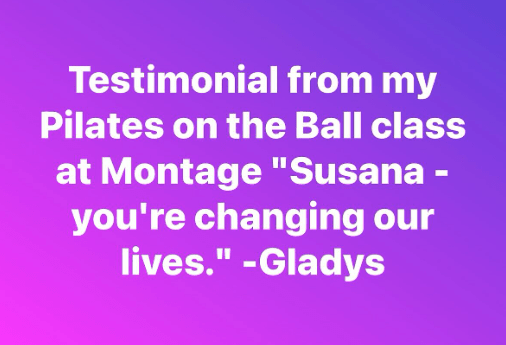 Testimonials from my Pilates on the Ball class at Montage Marina: